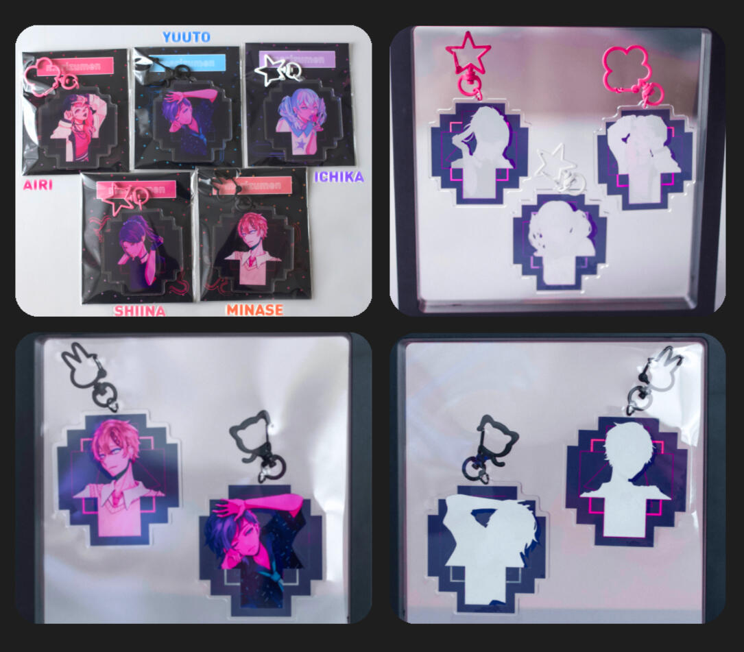 keychains, postcards, acrylic block