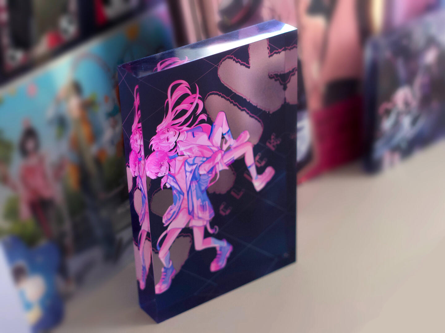 keychains, postcards, acrylic block